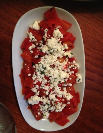 Char-grilled peppers topped with feta cheese, olive oil and a hint of garlic.
