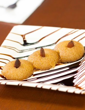 BBQ char-grilled meat balls served with a rich tomato, pepper and garlic sauce (not spicy)