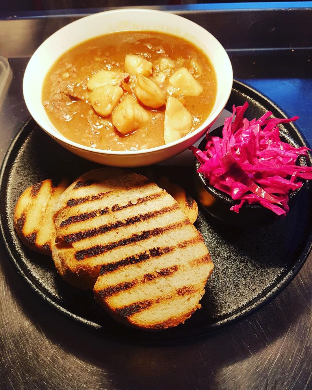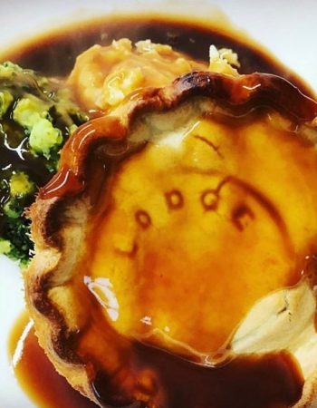 Homebaked bakery pie served with chips or mash, mushy peas & gravy. Choose from Scouse, Shankly (Beef, Bacon, Mushroom & Onion),